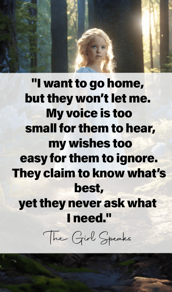 My voice feels too small for them to hear. My words, my wishes, my truth—it all gets brushed aside like it never mattered. Like I don’t matter.