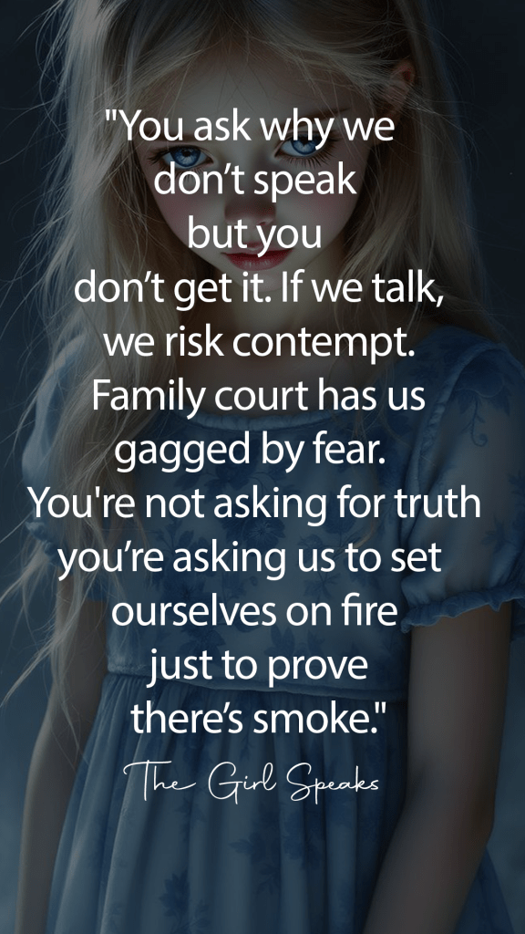We’re quiet because family court makes truth punishable.