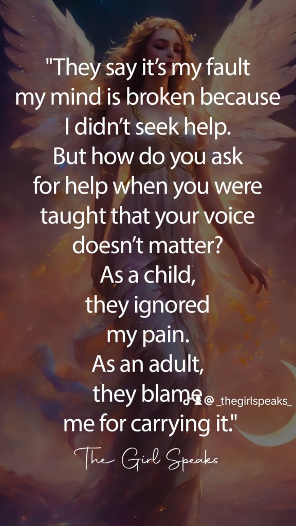 Asking “why” meant inviting more pain. More confusion. More punishment. So I stopped wondering. I stopped hoping things could be different. I did what I had to do: stayed quiet, stayed small, stayed out of the way. That was survival.