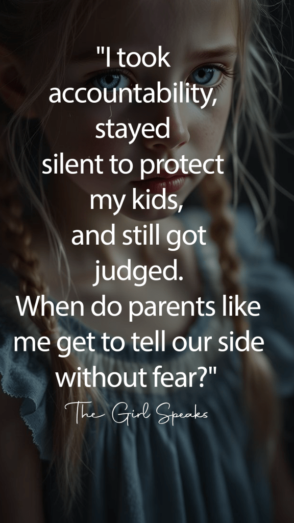 I post what I do for a reason: not just to be heard, but to give voice to the many others who message me privately with their stories—genuinely innocent or changed parents who are still being ignored or judged.